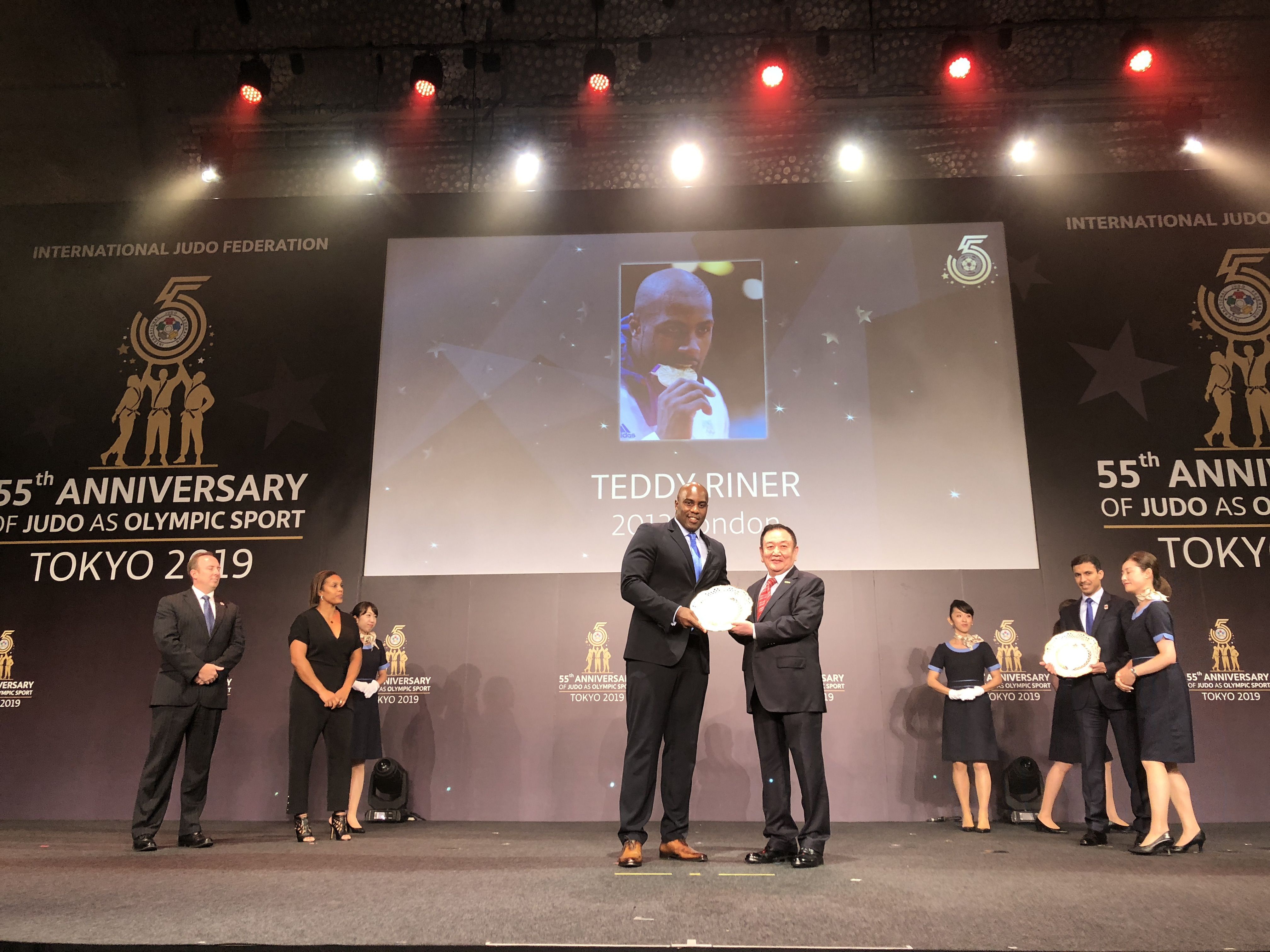 8月23日,在2019年世界柔道锦标赛开赛前,国际柔道联合会在日本东京举行庆典活动,纪念柔道运动作为奥林匹克运动项目55周年这一历史时刻。仪式上,国际柔道联合会将近60年来为世界柔道运动做出贡献的运动员与组织机构颁发奖项。OD体育产业集团作为国际柔道联合会顶级合作伙伴受邀出席,董事长卞志良作为特邀嘉宾为伦敦奥运会最佳男运动员Mr. Teddy Riner,伦敦奥运会最佳女运动员Mrs. Lucie Decosse 颁奖。