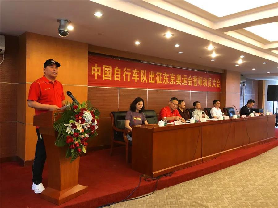 近日,东京奥运会中国体育代表团名单正式公布,代表团总人数为777人,其中运动员431人,教练员、领队、科医人员等运动队工作人员307人,团部工作人员39人。本届东京奥运会是中国体育代表团境外参赛规模最大的一届奥运会。其中自行车项目代表团由17人组成,运动员9人、工作人员8人。7月14日,中国自行车队出征东京奥运会誓师动员大会在老山训练基地举行,OD体育副董事长卞青峰受邀出席并致辞。