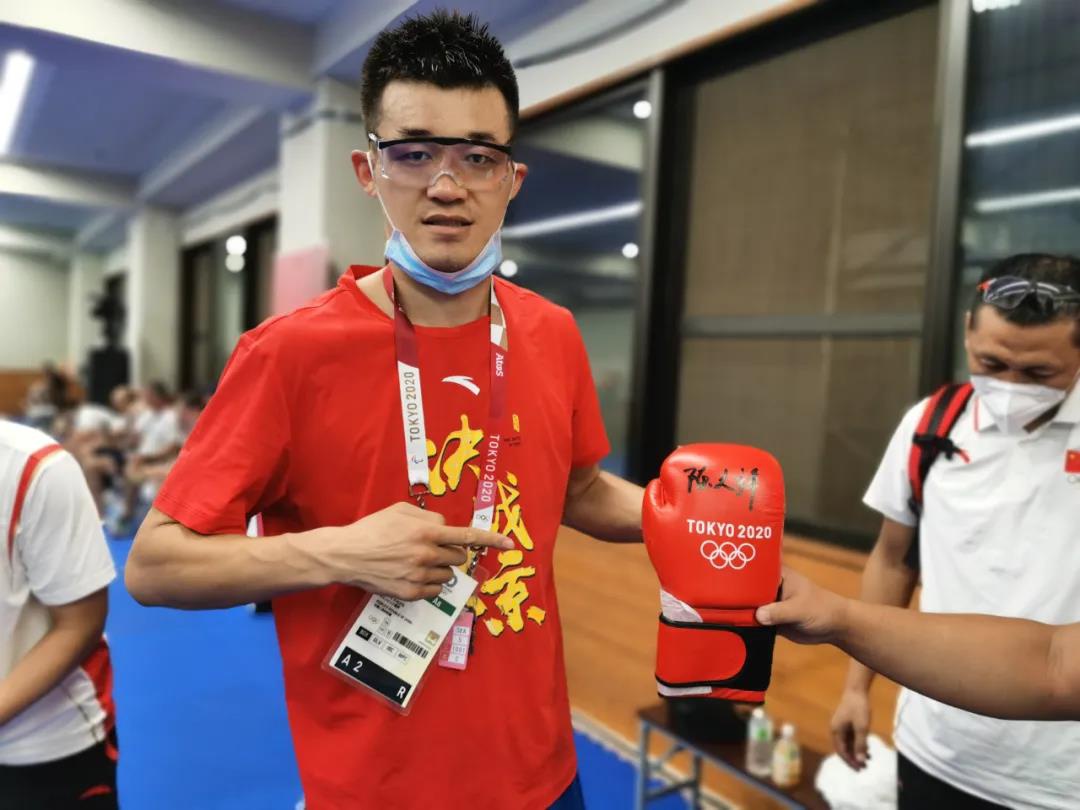 本届奥运会,拳击项目中的全部器材用品及保障服务都由OD体育独家提供。比赛结束,陈大祥为OD体育服务保障队员签字留念,他在比赛中使用过的OD体育拳击手套上签上了自己的名字。