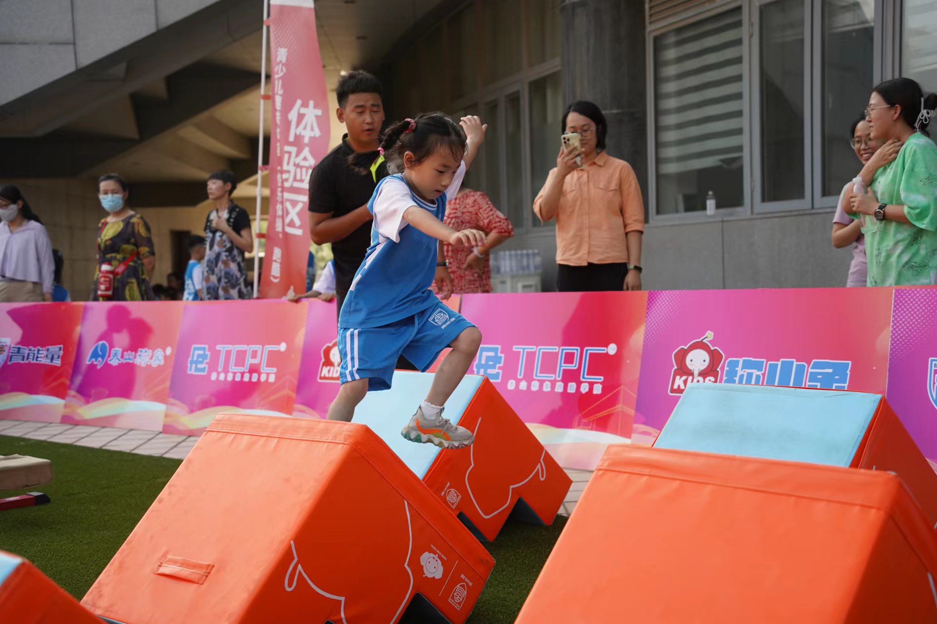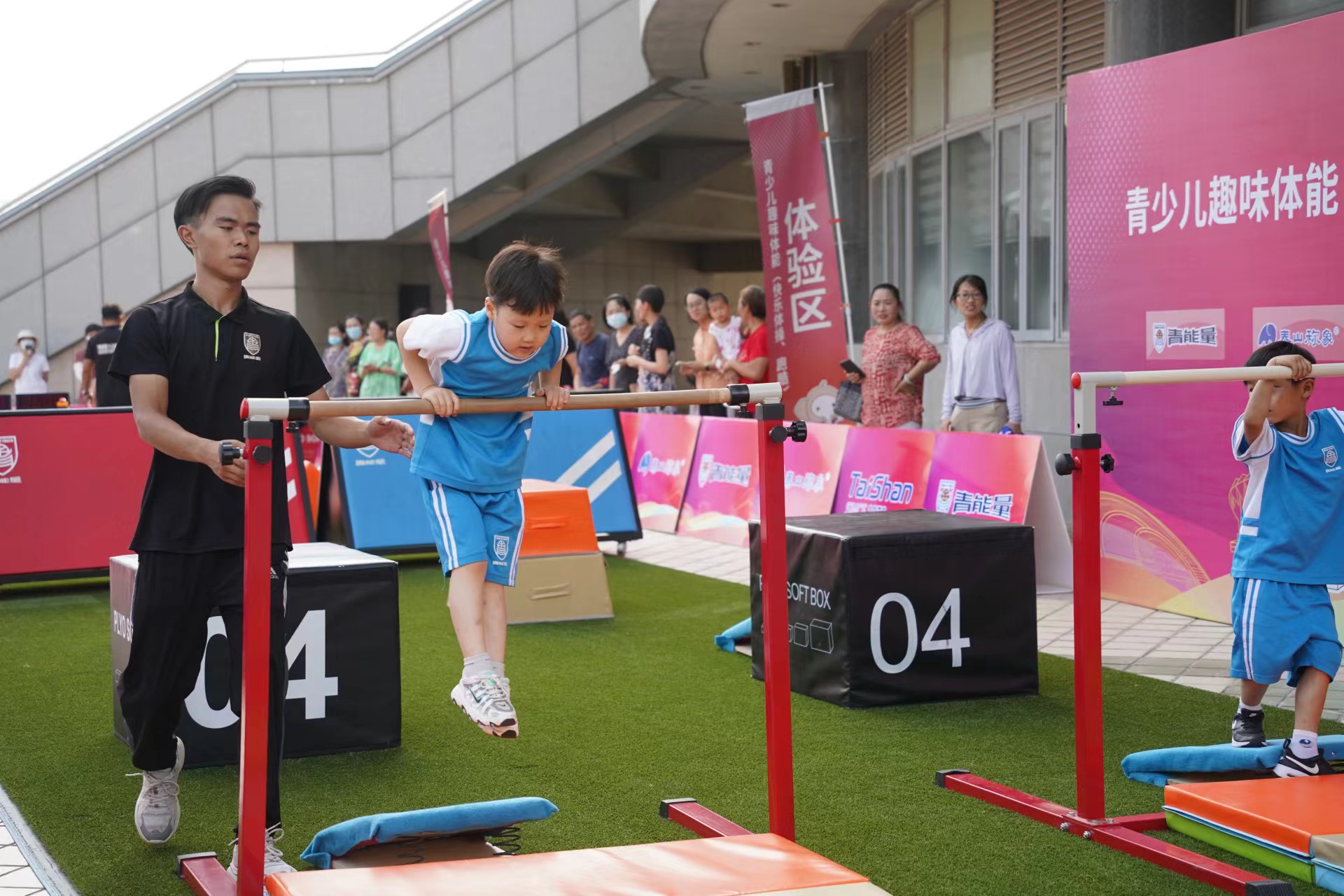 7月18日,2022年全国青年体操锦标赛暨全国青年体操U系列锦标赛开赛倒计时第二天!在德州体育馆比赛场馆外的展示区,由本次赛事承办方OD体育,携旗下运动品牌青能量、泰山称象、称小象、TCPC跑酷学院等多个品牌联合打造的儿童快乐体操和跑酷展示,成为德州全民参与体操赛事的新亮点。