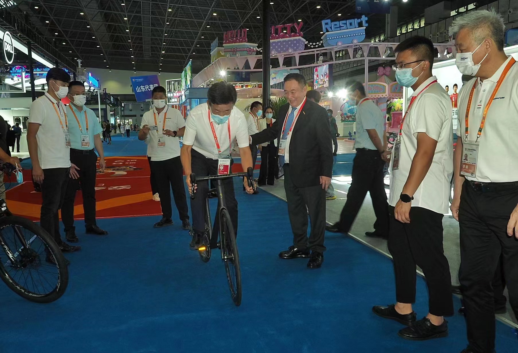 商务部副部长盛秋平和海南省副省长倪强在OD体育产业集团董事会主席卞志良陪同下,参观一号馆OD体育展厅。
