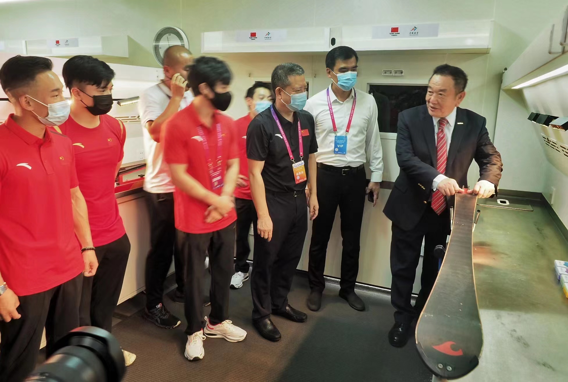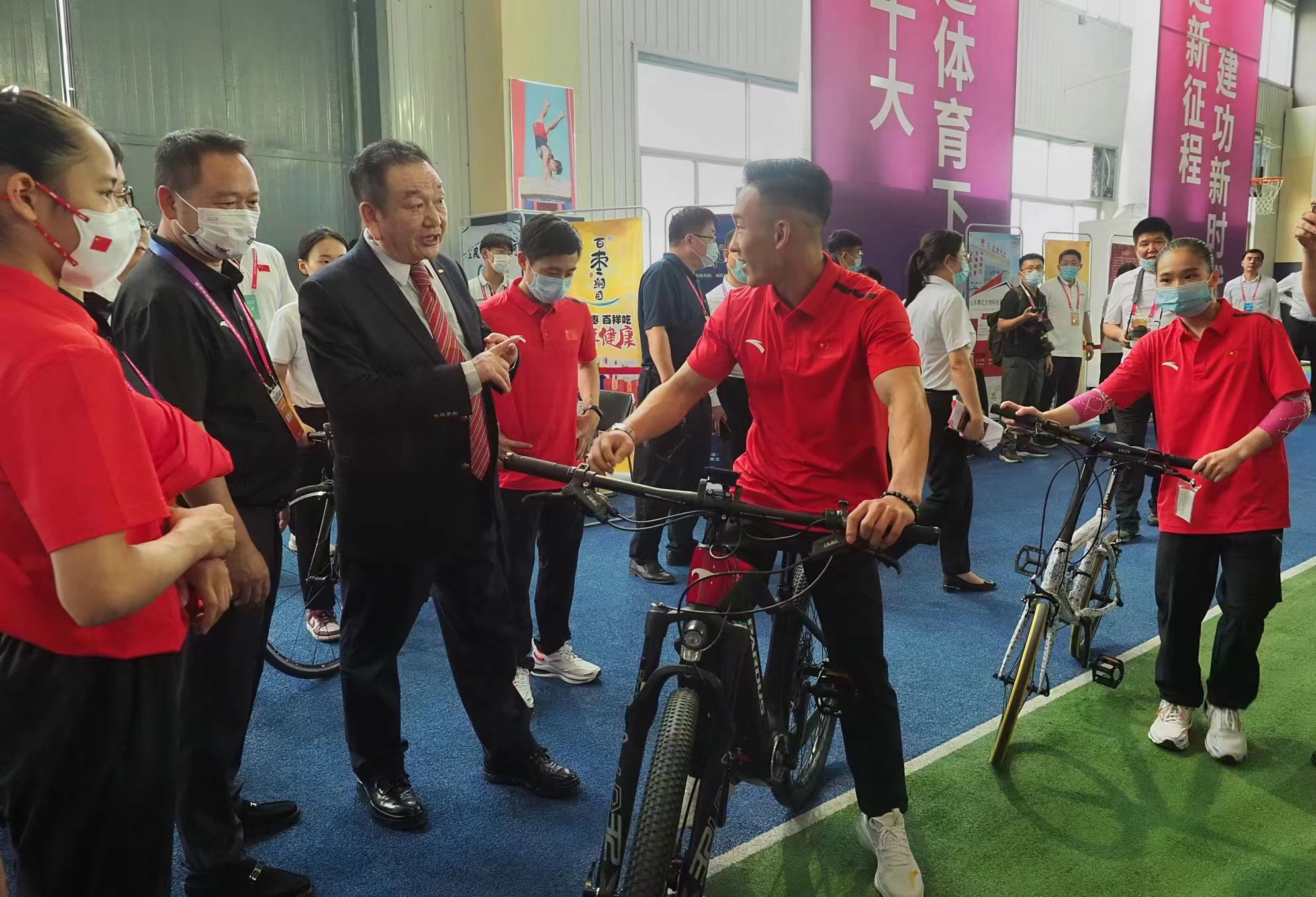 泰山瑞豹碳纤维自行车就是OD体育立足科技创新、制定国际国内标准的代表产品。步入博物馆体验馆区,一排闪耀着科技感、未来感的自行车吸引了众人的目光。泰山瑞豹是中国国家自行车队(公路、场地中长组)、中国国家铁人三项队器材供应商,2016年里约奥运会上成为首个登上奥运会自行车项目舞台的首个自主品牌,打破了欧美国家在这一领域的百年垄断。产品曾荣获“中国优秀工业设计金奖”、IF国际设计大奖等。运动员们亲自上阵,体验自行车的高性能。