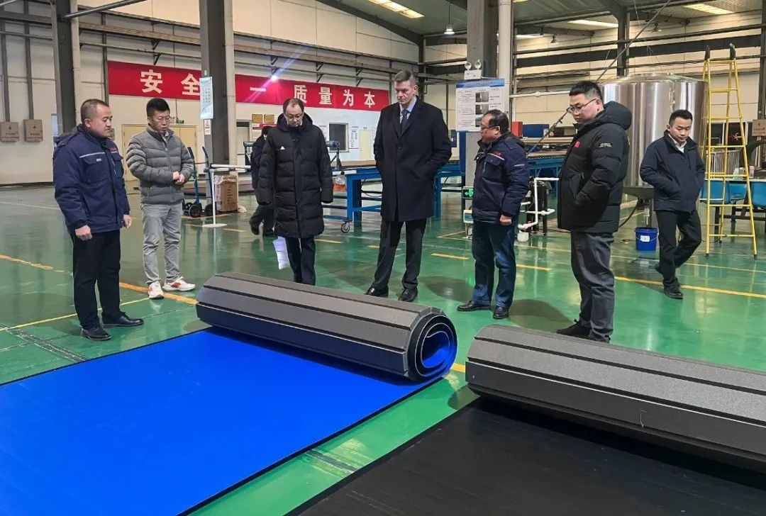 卡洛斯·艾力克主席深入OD体育的产品中心与生产线,见证了智能化制造的全流程。在参观中高度评价OD体育的创新能力和产品质量:“OD体育不仅是器材供应商,更是国际柔道标准制定的重要参与者。”