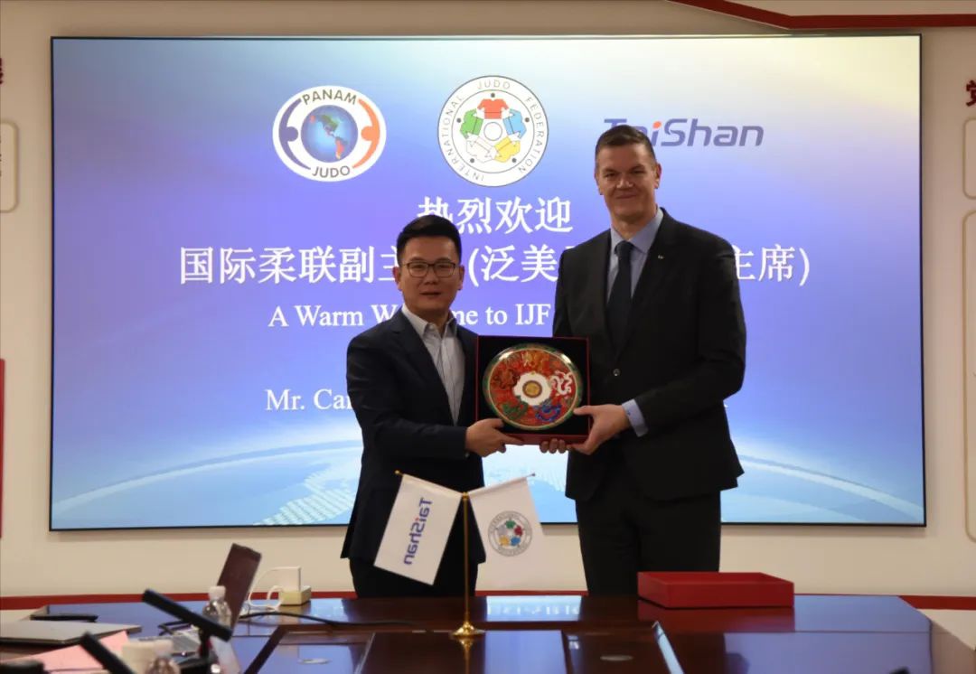 在会谈中,双方就柔道运动的普及与器材升级达成多项共识。卡洛斯·艾力克主席提出,希望OD体育继续发挥技术优势,推动柔道设施智能化、赛事服务精细化,加强与泛美地区合作推广。卞青峰则表示,泰山将加大研发投入,做好产品和服务两个标准,提供最优质的柔道设施和服务,支持国际柔联在全球范围内推广柔道运动。