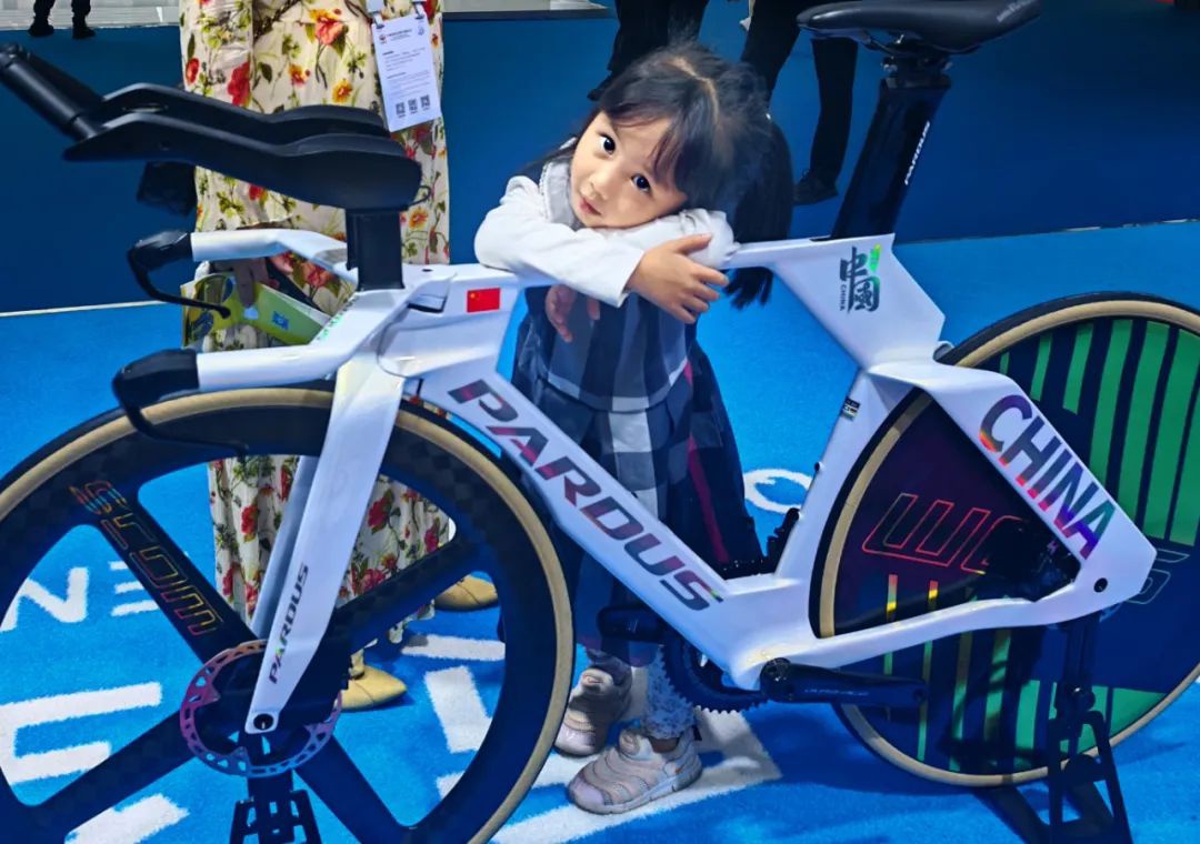 在消博会OD体育展区,一位4岁的小女孩趴在一辆为2028年洛杉矶奥运会设计的自行车上,久久不愿离开。这辆自行车洁白的车身上印着“中国”字样和炫酷的图案,尽显科技与运动的魅力。小女孩充满好奇地探索着,这一画面不仅洋溢着童真,更展现了奥运科技与大众的奇妙融合,也体现了本届消博会OD体育对普通大众的期待与关注。